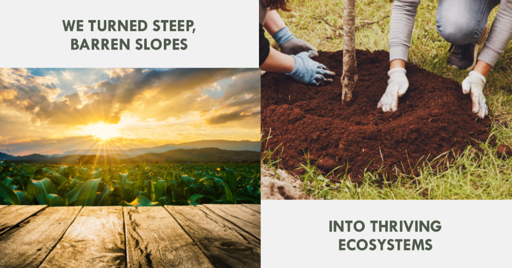 Purpose: To turn steep, barren slopes into thriving ecosystems.